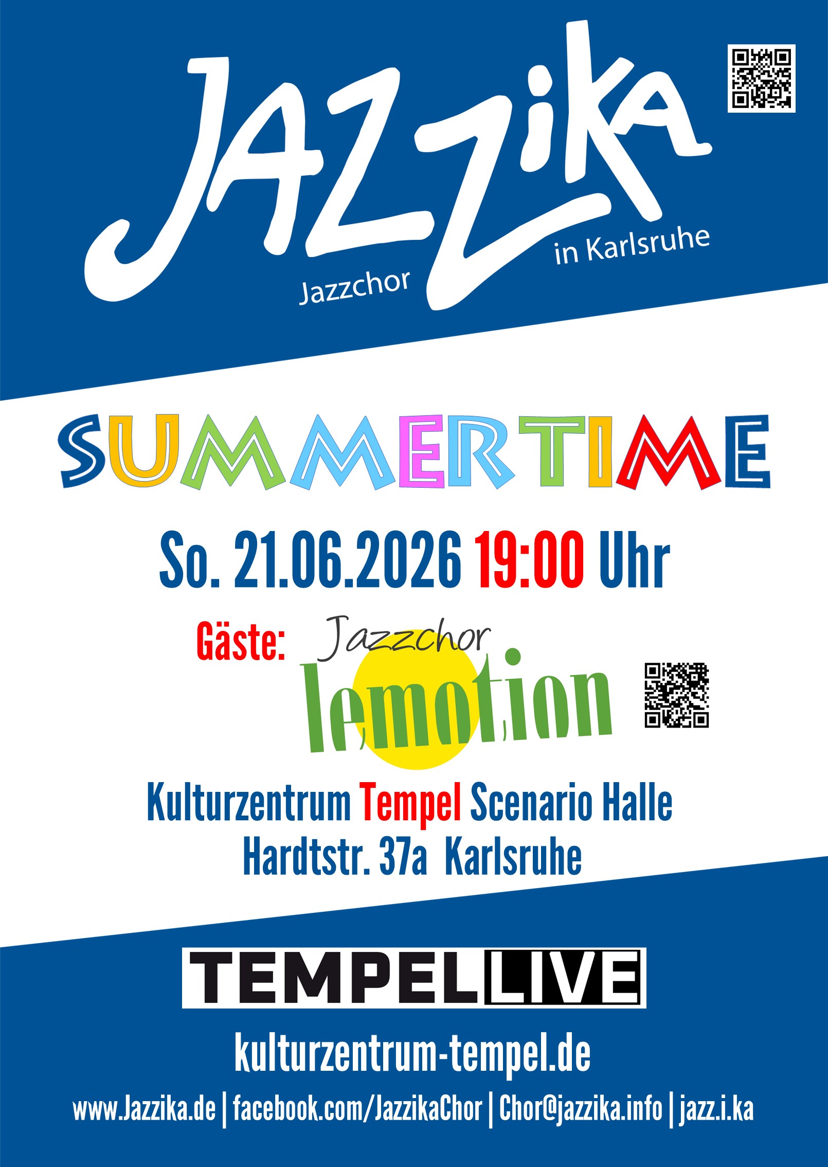 Sommerkonzert zusammen mit dem Jazzchor lemotion am 21.06.2026 im Kulturzentrum Tempel